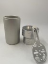 This is a uniquely - shaped metal statue. It is silver in color and made of aluminum alloy. Designed based on a simple human form, the statue portrays an elegant figure. Although there is not much detailed carving, the smooth lines highlight its artistic beauty. The bottom of the statue is connected to a cylindrical base, which makes it stable when placed. It can serve as an art ornament for homes and offices, adding an artistic atmosphere to the space. This is a cylindrical metal part. It has a shiny silver appearance, a smooth surface with a metallic luster, and a relatively high processing precision. The part is hollow - structured, with a uniform wall thickness and neat, burr - free edges. It is made of stainless steel, which has certain strength and corrosion resistance. In the mechanical field, it can be used as a shaft sleeve, connecting piece, etc., providing functions such as support and positioning for mechanical components. It includes a large cylindrical metal part, a set of stacked ring - shaped metal parts, and a sheet - shaped metal part with a hollow - out pattern. All the parts are silver, with delicate surface treatment. The large cylindrical metal part and the ring - shaped metal parts can be used for positioning and sealing in mechanical assembly; the sheet - shaped metal part with a hollow - out pattern is exquisitely designed, with regularly distributed holes. It can be used as a handle part in mechanical operation, facilitating manual control and reducing its own weight at the same time. Overall, these parts are suitable for various mechanical systems that have requirements for precision and material properties.